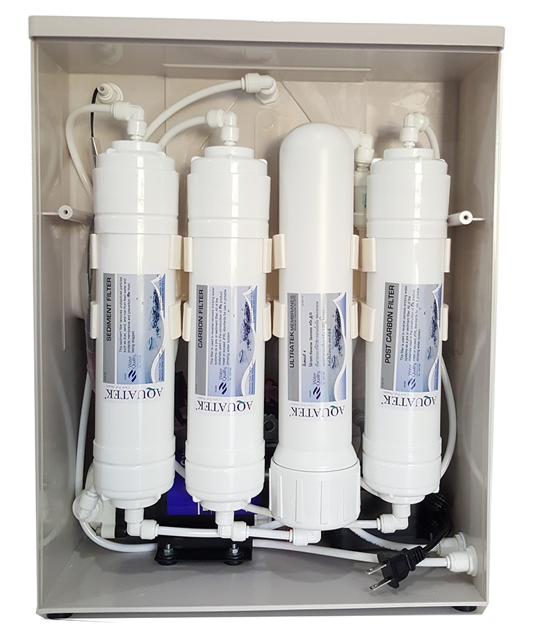 - ขั้นตอนที่ 4 ไส้กรอง Post Carbon ทำหน้าที่กรองขั้นสุดท้าย โดยสามารถกรองสารเคมีที่เป็นพิษต่อร่างกาย เช่น ยาฆ่าแมลง สารหนู สารปรอท สารอินทรีย์ กำจัดสีและกลิ่นที่อาจตกค้างอยู่ในน้ำ ทำให้น้ำดื่มที่ปราศจากกลิ่นหรือสีอันไม่พึงประสงค์ได้