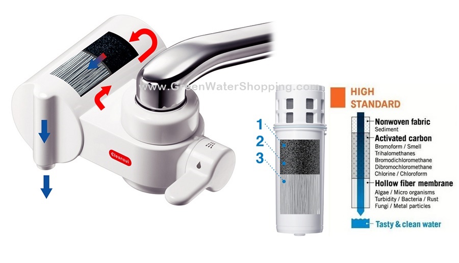 เครื่องกรองน้ำแบบต่อก็อกซิงค์ Mitsubishi Cleansui รุ่น CB Series CB013 (High Grade Filter) - เครื่องกรองน้ำมิตซูุบิชิ ครีนซุย คุณภาพสูง ผลิตจากประเทศญี่ปุ่น (Made-In-Japan)โดดเด่นด้วยดีไซน์เล็กกะทัดรัด สวยงาม ติดตั้งง่ายเข้ากับก็อกน้ำซิงค์ด้วยตนเอง วัสดุทำจากพลาสติก ABS แข็งแรง ทนทาน มาพร้อมไส้กรองที่ผลิตด้วยเทคโนโลยีชั้นสูง "จิ๋วแต่แจ๋ว" ด้วยการกรองถึง 3 ขั้นตอนในชิ้นเดียว สามารถกรองน้ำด้วยความละเอียดมากถึง 0.1 ไมครอน สามารถกรองเชื้อโรคต่างๆ กำจัดแบคทีเรียในน้ำได้ถึง 99.99% และสารละลายที่ไม่พึงประสงค์ออก แต่ยังคงไว้ซึ่งแร่ธาตุต่างๆในน้ำ ทำให้ได้น้ำดื่มที่สะอาดและปลอดภัยแก่การดื่มกิน ทั้งยังง่ายต่อการใช้งาน