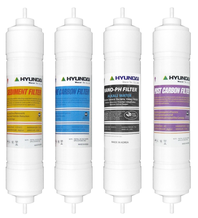 ชุดไส้กรองน้ำนาโน พีเอช 4 ขั้นตอน แบรนด์ ฮุนได สำหรับเครื่องกรองน้ำรุ่น HW-UP, HW-NP 200N ขนาด 2.5x13 นิ้ว - สุดยอดนวัตกรรมไส้กรองน้ำดื่มจากเกาหลี แบรนด์ Hyundai WACO คุณภาพสูง ผลิตจากประเทศเกาหลี (Made-In-Korea) เป็นไส้กรองแบบ Inline หรือ แบบแคปซูล ขนาด 2.5x13 นิ้ว สามารถกรองเชื้อโรคที่มีขนาดเล็กมากถึง 0.001 ไมครอน สามารถกรองเชื้อโรคต่างๆ เช่น แบคทีเรีย ไวรัส ทำให้ได้น้ำที่ สะอาด ปลอดภัย เหมาะแก่การดื่ม สำหรับเปลี่ยนไส้กรองน้ำฮุนได รุ่น HW-UP, HW-NP 200N หรือเครื่องกรองน้ำอื่นๆ ที่ใช้ไส้กรองน้ำแบบแคปซูล 4 ขั้นตอน ขนาด 2.5x13 นิ้ว