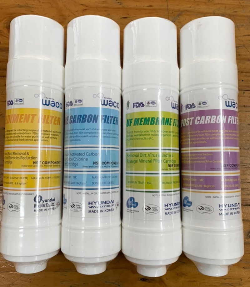 ชุดไส้กรองน้ำ 4 ขั้นตอน UF ฮุนได แบบ U-type สำหรับเครื่องกรองน้ำ Puramun รุ่น PM-815CB และ PM-815CW ขนาด 2.5x9 นิ้ว- 4 Steps UF Hyundai WACO U-type Filters for Puramun PM-815CB, PM-815CW size 2.5x9"