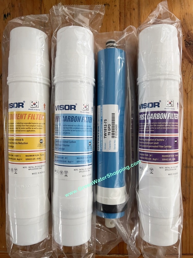 ชุดไส้กรองน้ำ VISOR Hyundai 4 ขั้นตอน RO สำหรับเครื่องกรองน้ำ VISOR Hyundai รุ่น WP-2200 ขนาด 2.5x13 นิ้ว- 4 Steps RO Filters for VISOR Hyundai WP-2200 size 2.5x13"