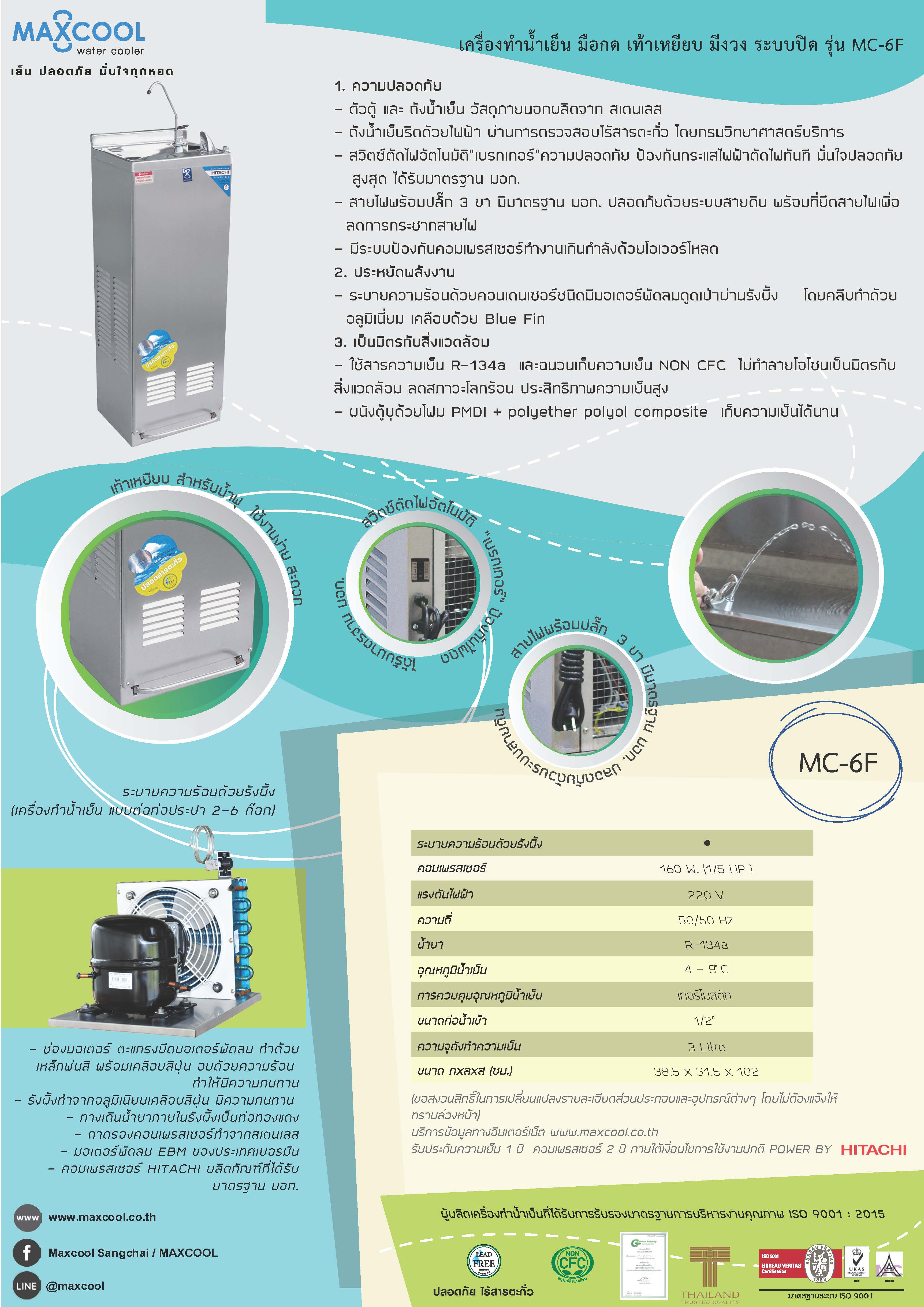 - อุณหภูมิน้ำเย็น 4-8°C