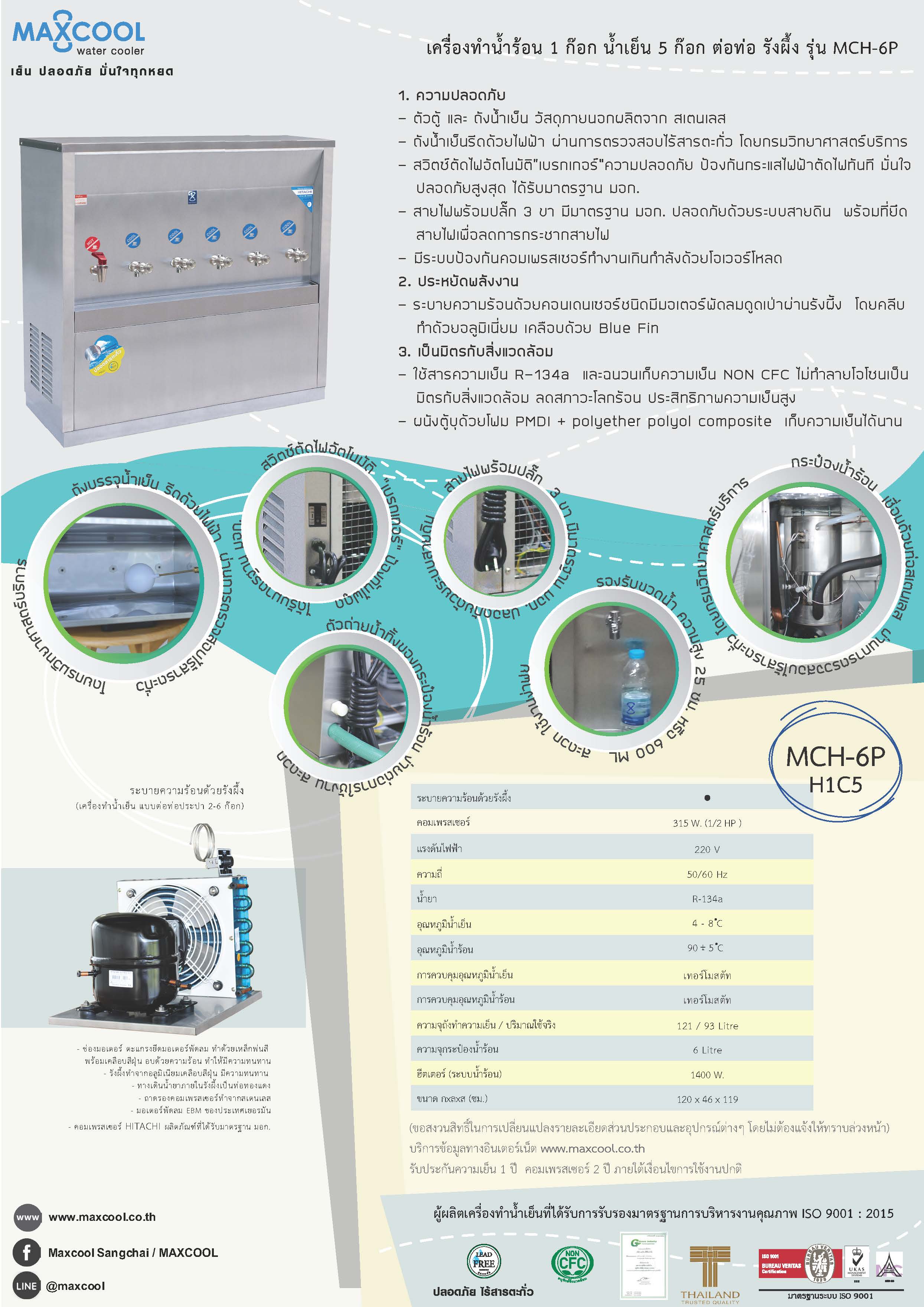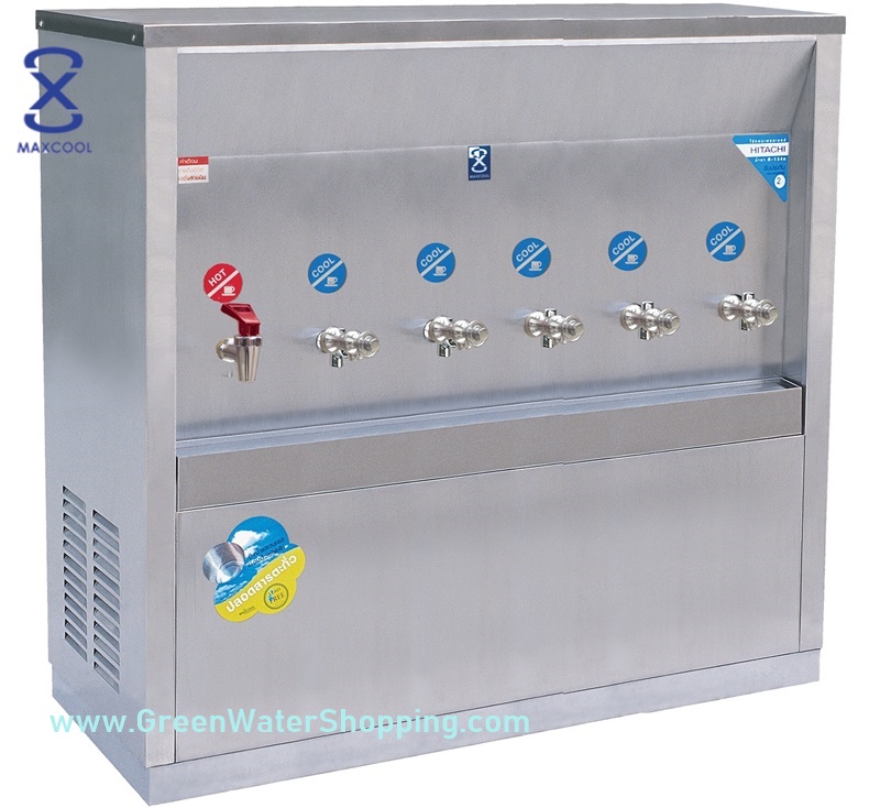 เครื่องทำน้ำเย็น สแตนเลส ต่อท่อ น้ำร้อน 1 ก๊อก น้ำเย็น 5 ก๊อก Maxcool รุ่น MCH-6P