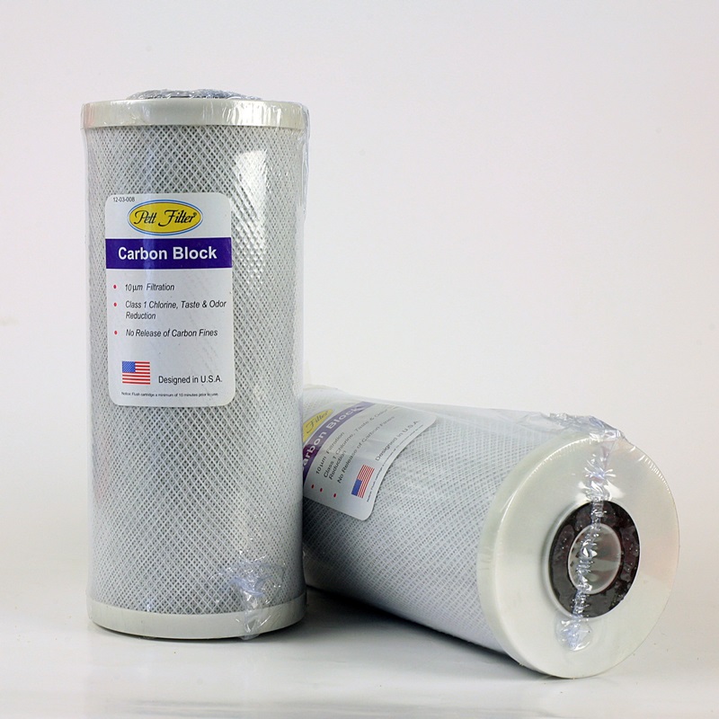 ไส้กรองบล็อกคาร์บอน Big Blue 10นิ้วและ 20 นิ้ว - Block Carbon Filter Big Blue 10", 20" ขนาด 10"x4.5" และ ขนาด 20"x4.5"ไส้กรองน้ำคาร์บอน ชนิดแท่ง ผลิตจากคาร์บอน หุ้มด้วยแผ่นกรองตะกอน และตาข่ายโพลีเอทธีลีน ทำหน้าที่ดักจับสี กลิ่น สารอินทรีย์ ยาฆ่าแมลงและคลอรีน จุดเด่น สามารถกำจัดโลหะหนัก ตะกั่วและทองแดงได