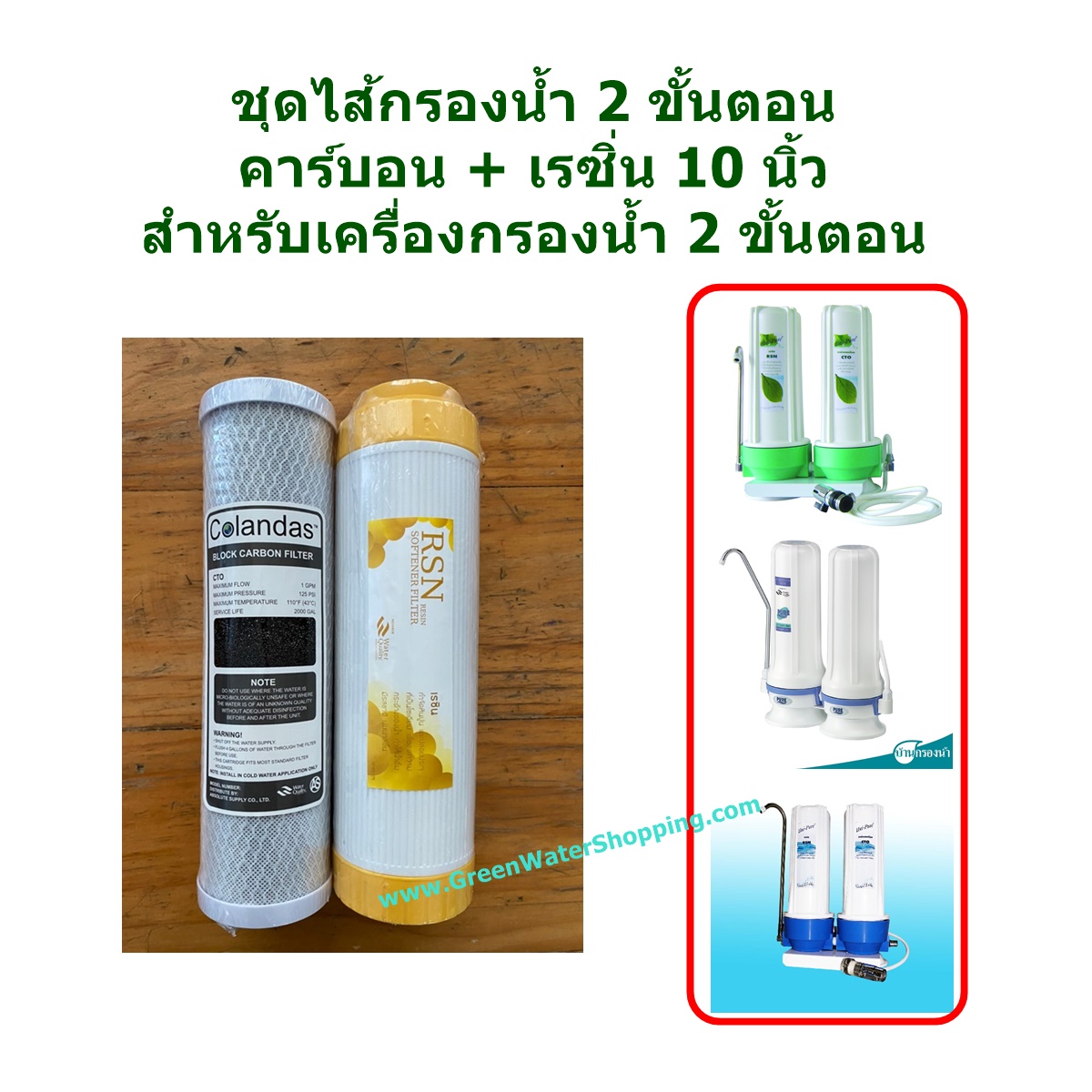 ชุดไส้กรองน้ำ 2 ขั้นตอน ยาว 10 นิ้ว- 2 pieces Carbon + Resin Filter Set size 10"