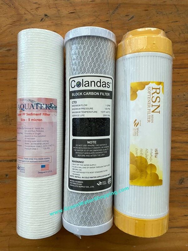 ชุดไส้กรองน้ำ 3 ขั้นตอน ยาว 10 นิ้ว- 3 pieces PP + Carbon + Resin Filter Set size 10"