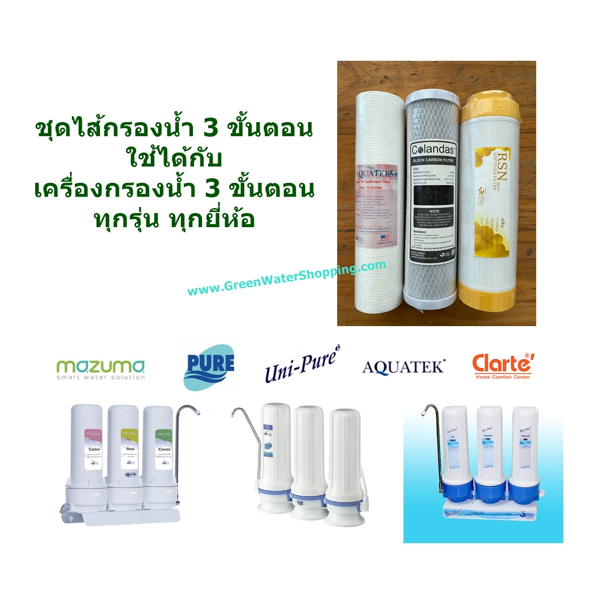 ชุดไส้กรอง 3 ชิ้น ยาว 10 นิ้ว สำหรับเครื่องกรองน้ำ 3 ขั้นตอน ทุกรุ่น ทุกยี่ห้อ