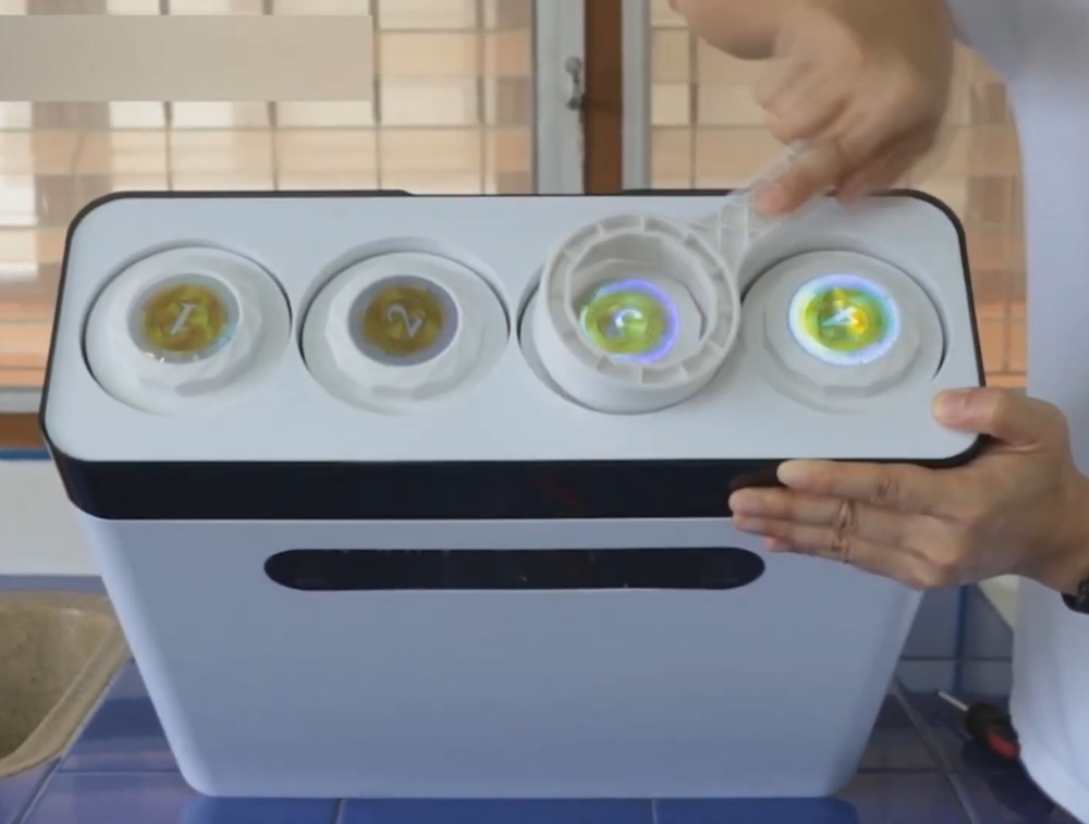 - ขั้นตอนที่ 4 Reverse Osmosis Membrane 400 GPD (สูงสุด 800 ลิตรต่อวัน) การกรองที่มีความละเอียดมากถึง 0.0001 ไมครอน กรองเชื้อโรค แบคทีเรีย เชื้อไวรัส แม้กระทั่งเกลือในน้ำ จึงทำให้น้ำสะอาด บริสุทธิ์
