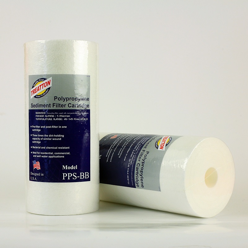 ไส้กรองน้ำ PP Big Blue - Sediment Filter 5 micron 10", 20" เกรด A ขนาด 10"x4.5" และ ขนาด 20"x4.5" เส้นใยสีขาวทำจาก โพลีโพรพีลีน