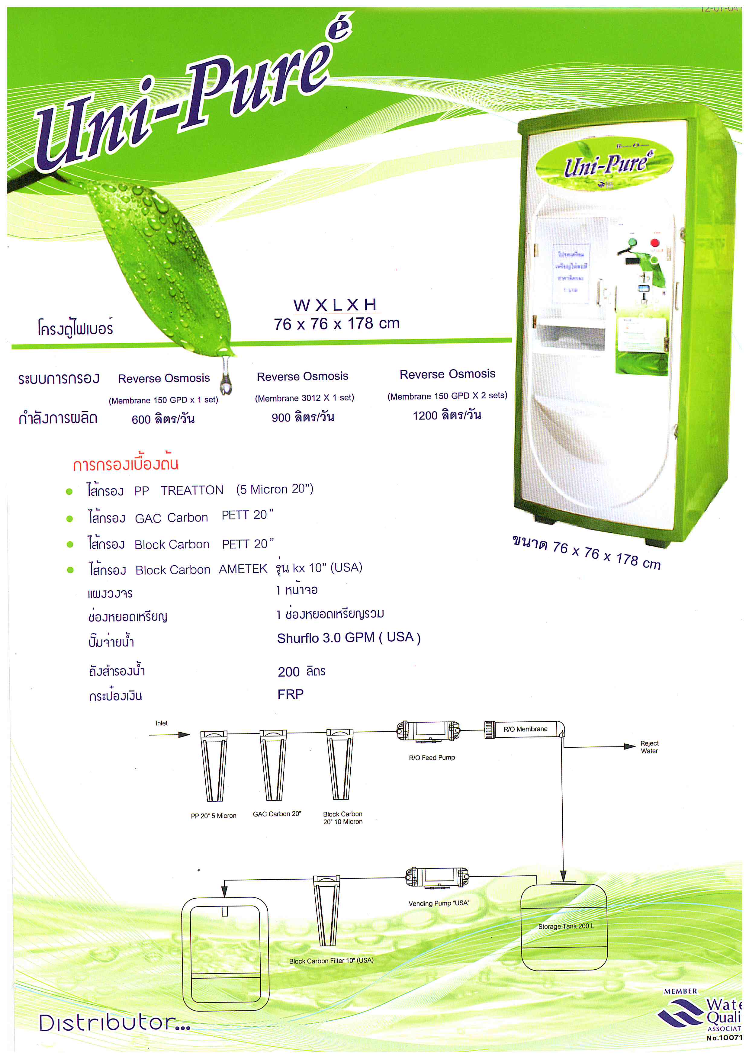 ตู้กดน้ำหยอดเหรียญ จาก ยูนิเพียว (UniPure) ผู้นำตลาดตู้น้ำหยอดเหรียญ อันดับ 1 ในไทย มาพร้อมระบบการกรอง แบบ Reverse Osmosis (RO) กำลังการผลิตสูงถึง 1200 ลิตรต่อวัน หรือ 300 GPD (Gallon Per Day)